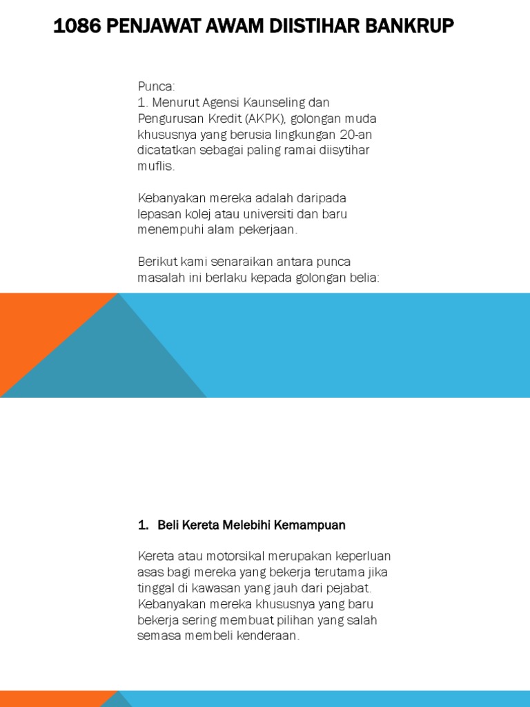 Kakitangan awam sahaja SENARAI RUMAH YANG AVAILABLE DI BAWAH KOPERASI HARTANAH ANGGUN BERHAD KOHAB Updated 1852020 Edited by. PUTRAJAYA - Seramai 1086 penjawat awam di negara ini diisytiharkan muflis oleh Jabatan Insolvensi pada tahun 2009Jumlah itu merupakan 146 peratus daripada bilangan keseluruhan 127 juta penjawat awam. Lebih 49 ribu penjawat awam berdepan risiko menjadi muflis berikutan kegagalan mereka menguruskan hutang pinjaman.